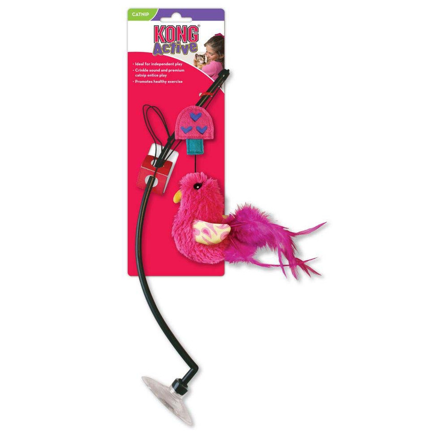 Connects Window Teaser is an interactive cat toy designed to promote healthy exercise and fulfill your cat's natural instincts to chase, hunt, and capture. Featuring KONG Premium North American Catnip, bright feathers, and a crinkle sound, this window-mounted teaser encourages independent play and provides mental and physical stimulation through engaging interactive engagement. C
