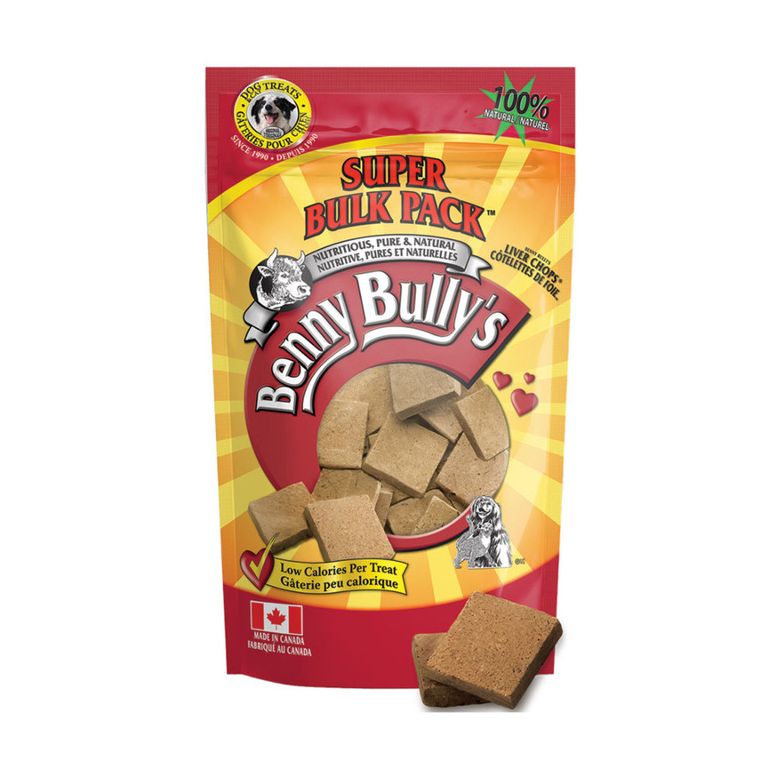 Benny Bully's Liver Chops Original Dog Treats offer a nutritious, pure, and natural alternative to traditional pet treats. Pet owners and dog trainers have discovered these treats as a simple choice, made with a single ingredient: pure beef liver. Although initially designed for dogs, cats also enjoy them due to their easily breakable pieces. This original single-ingredient beef liver pet treat was developed in 1990, providing a wholesome option for both dogs and cats.