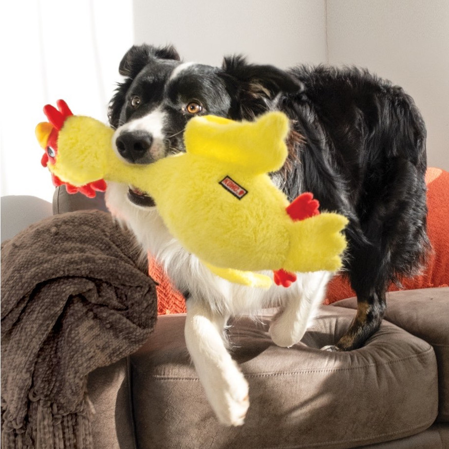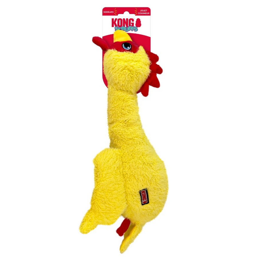 KONG Scruffs combines interactive play with comfort through its uniquely textured super-squeaker in the elongated neck, encouraging squishing and thrashing during playtime. The soft plush body provides comfort for snuggle time, and the extended neck design creates an ideal handle for dogs who enjoy carrying their toys. Available in multiple characters, measuring 4.25 x 14.25 inches.
