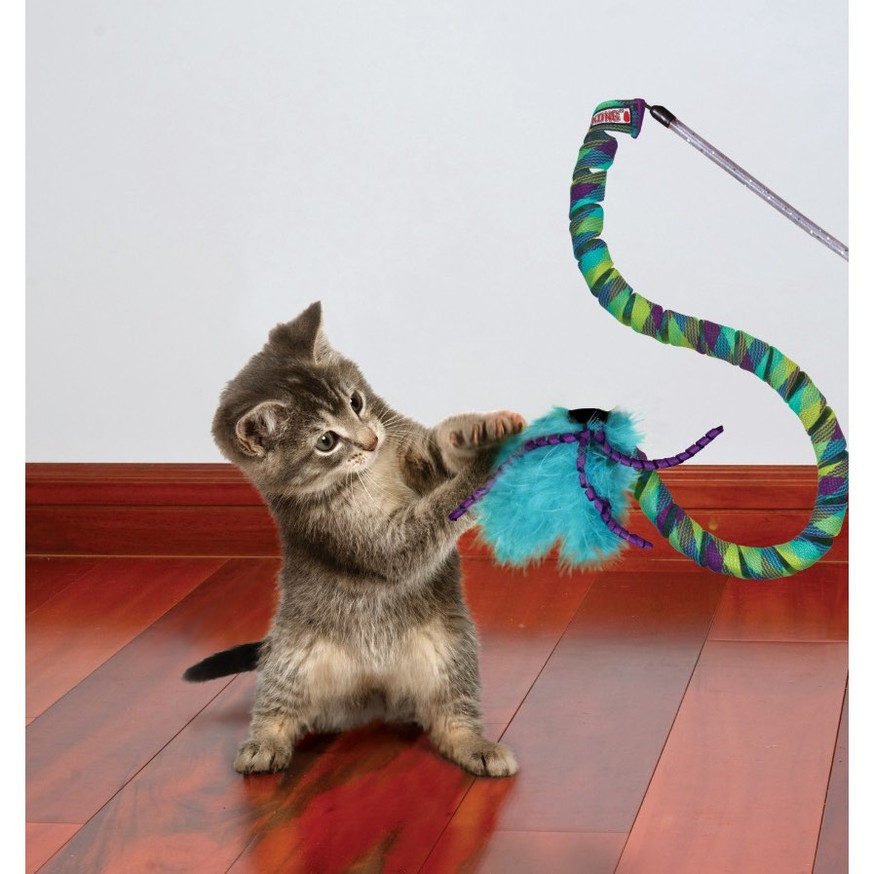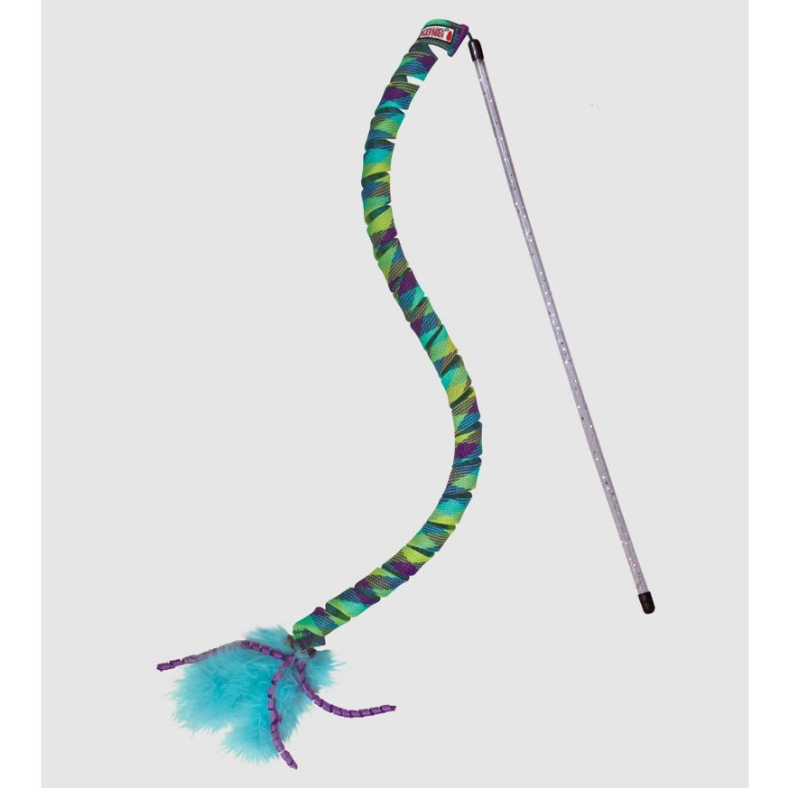Teaser Curlz Toy for Cats is an interactive wand toy featuring a unique corkscrew curl design that sparks feline play instincts. The glittering wand with feather and ribbon target entices cats to pounce and chase, while the durable woven spirals deliver crazy-fast recoil action. This toy rewards your cat's natural hunting behavior with high-speed springing motion that launches them into endless fun.