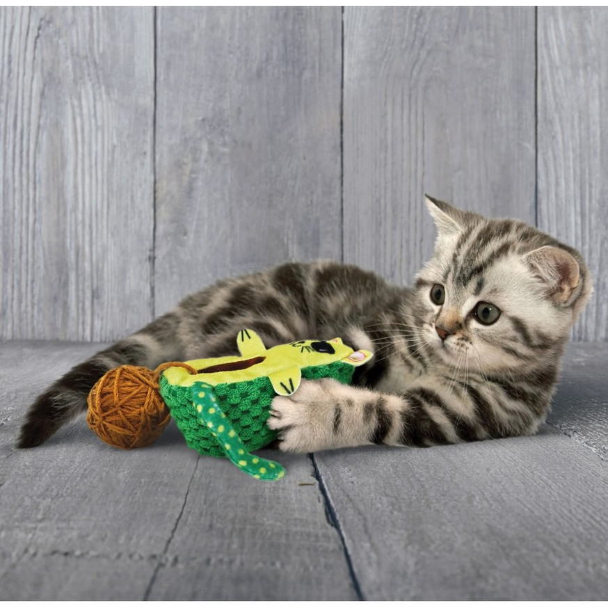 KONG Wrangler AvocaDo is a multi-sensory toy that satisfies cats' natural wrestling, chasing, and hunting instincts. Featuring a curved shape with a crinkly soft body, this toy invites healthy wrestling and interactive play. Infused with KONG Premium North American Catnip, it delivers a stimulating experience that keeps cats of all ages engaged and entertained.